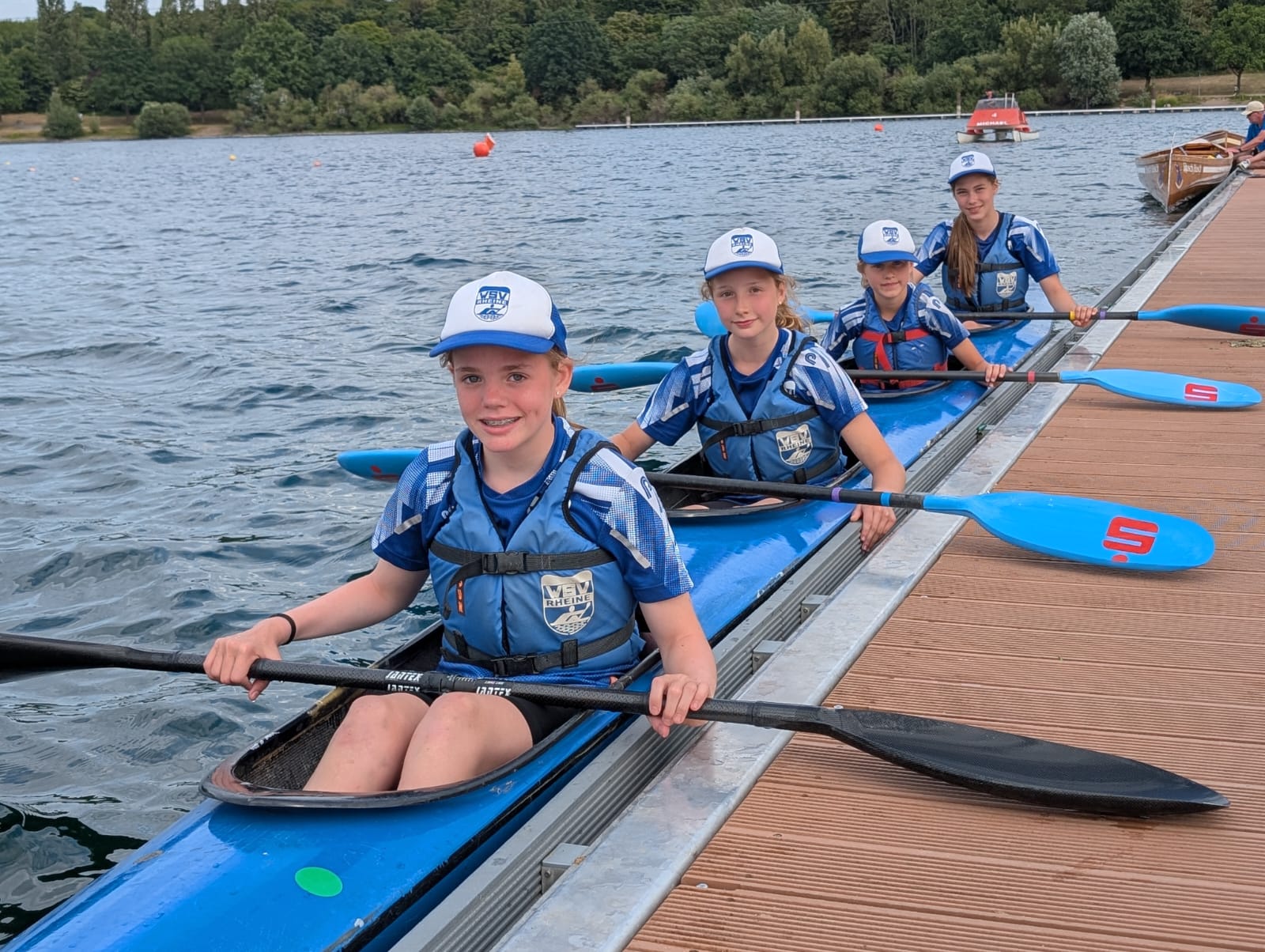 Ein besonderes Erlebnis waren die Westdeutschen Meisterschaften für Lina Göbl. Sie paddelt erst seit vier Wochen und trat im K4 mit ihren erfahreneren Teamkameradinnen Marit Möller, Milana Brungardt und Jana Laureen Hagedorn an. Die Mädels erreichten auf Anhieb über 500 Meter den Endlauf A und belohnten sich dort mit der Bronzemedaille. „Es war nicht nur der erste Wettkampf für Lina, sondern sogar ihr erstes Rennen“, verrät Isabel Greiwe anschließend. Das Quartett ging auch über die Langstrecke von 2000 Metern an den Start. Dort sprang sogar eine Silbermedaille für sie heraus. Entsprechend groß war die Freude nicht nur bei Lina, sondern auch bei den anderen drei Mädchen.